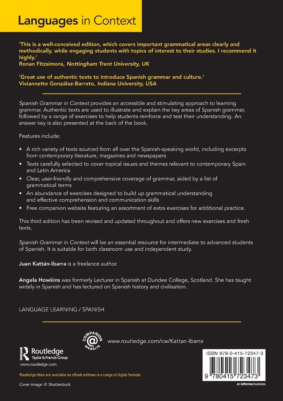 Authentic texts are used to illustrate and explain the key areas of Spanish grammar followed by a range of exercises to help students reinforce and test their understanding. Spanish Grammar in Context 3rd edition in Context Series. Authentic texts are used to illustrate and explain the key areas of Spanish grammar followed by a range of exercises to help students reinforce and test their understanding.